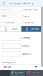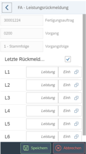 SAP PP App: Arbeitsvorgang rückmelden